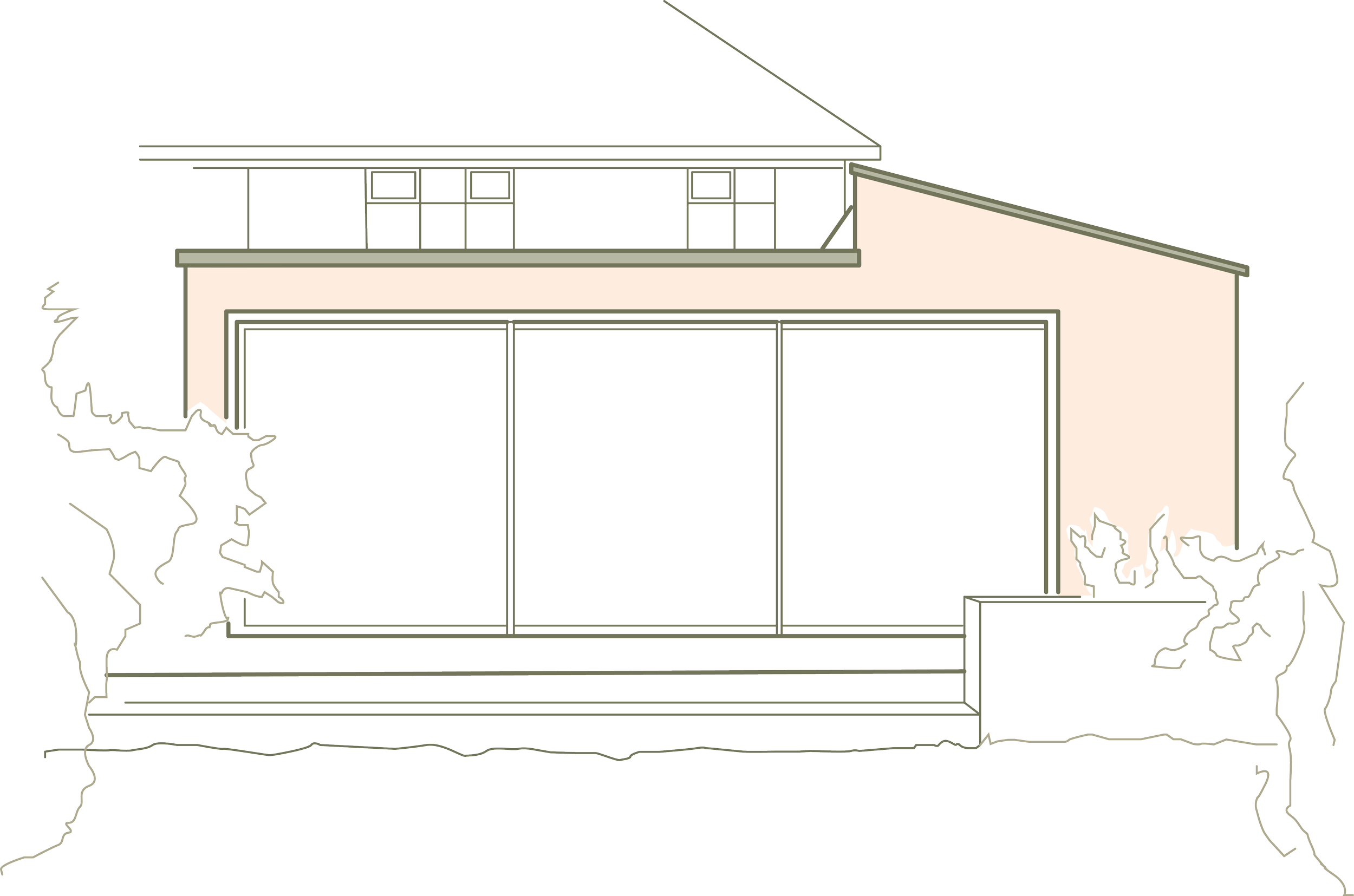 To the front, the extension projects forward to form a new porch entrance and home office. A key design consideration was ensuring the new addition complemented the original character of the house. This was achieved by introducing a pitched roof along the side extension that ties in with the existing roofline and materials.