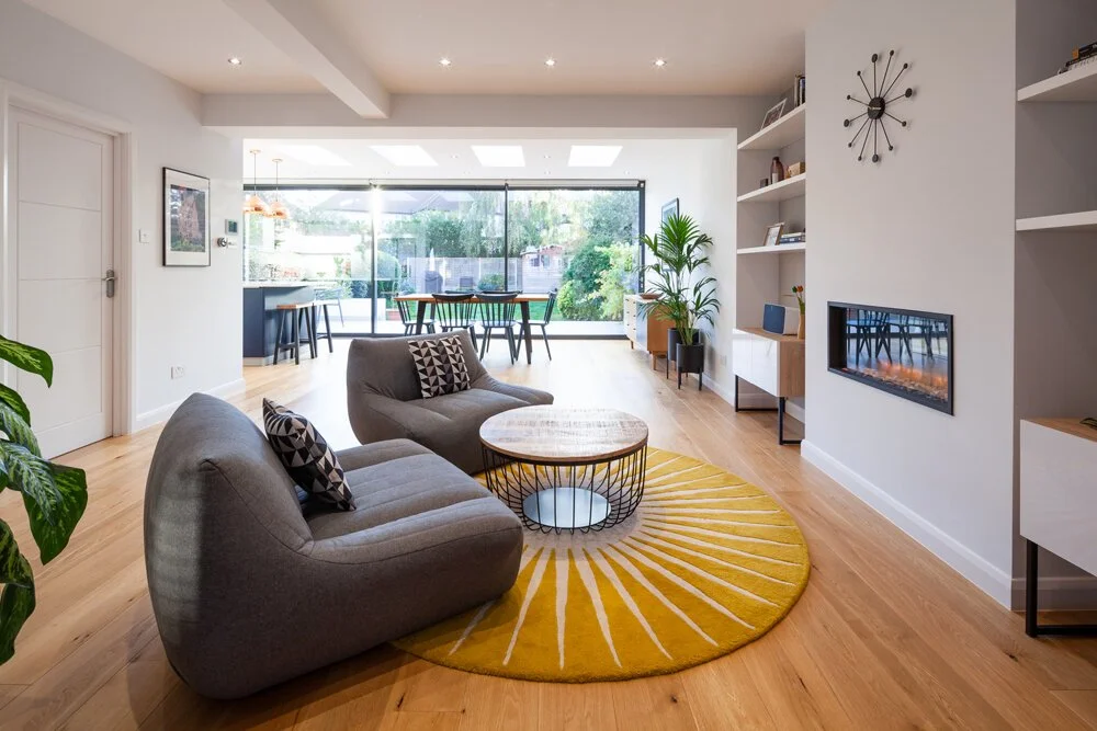 The original property was a 1930s semi-detached house with two main living rooms and a small kitchen. A loft conversion had already been completed prior to this project. The proposed works focused on a single storey extension that wraps around the side and rear of the house, transforming the home’s layout and appearance.