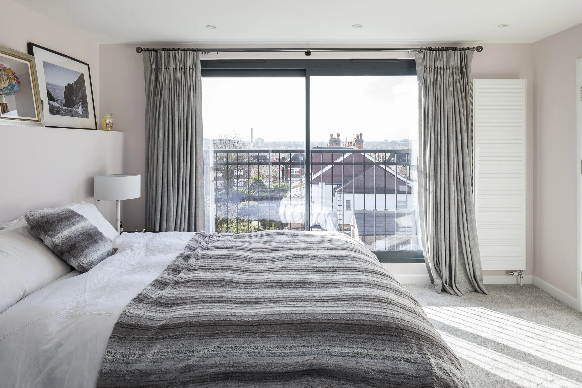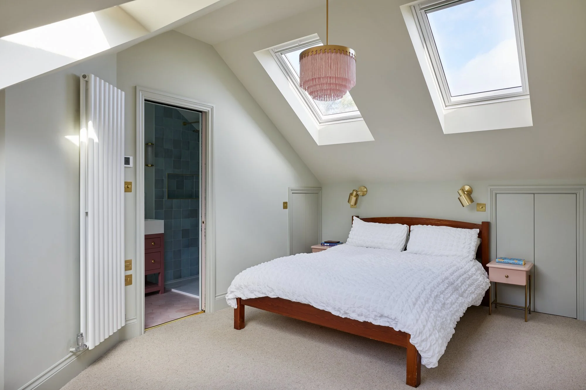 Windows and doors for loft conversions come in a wide variety of sizes, styles, and formats from classic rooflights and dormer windows to expansive sliding or bi-folding doors. A great example is the South-West London project shown above, where a full-width dormer was fitted with a panoramic set of sliding windows, flooding the interior with daylight and framing the view beautifully.