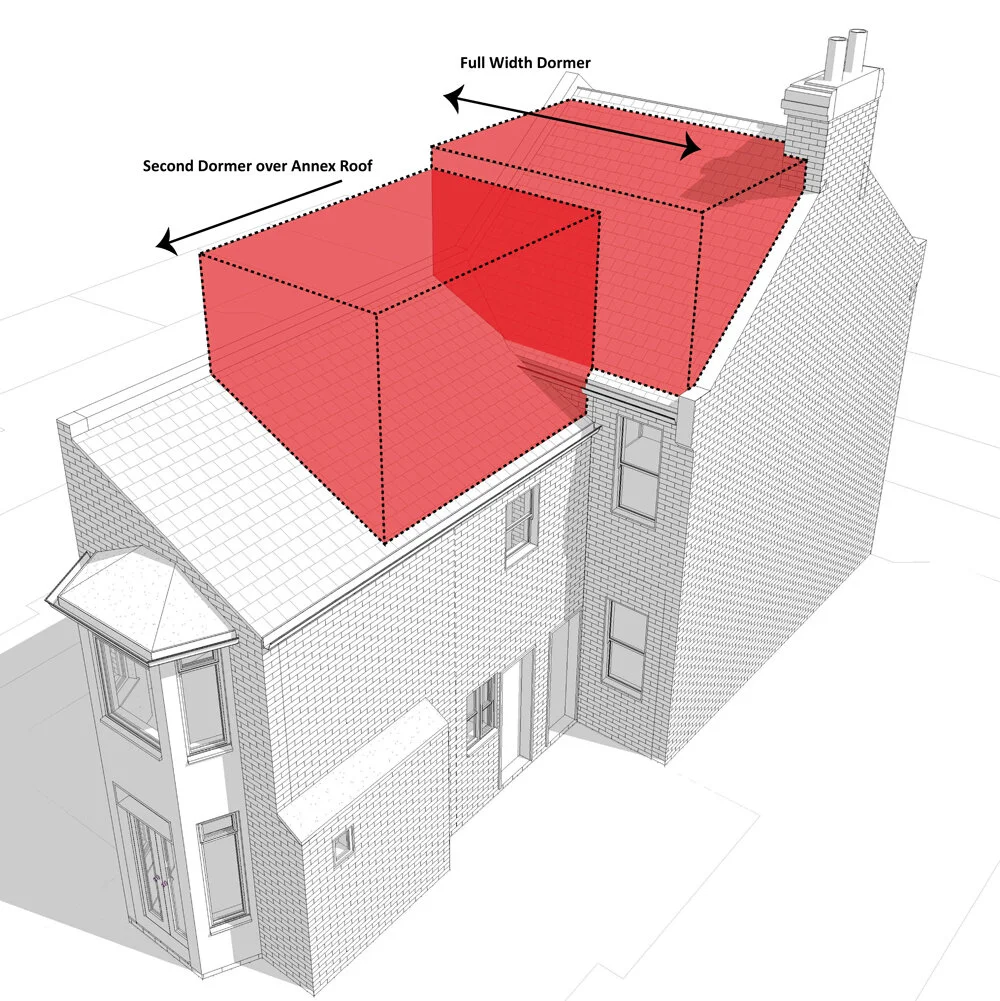 As stated above any addition to the roof cannot exceed a volume of 40m3 for a terraced and 50m3 for semi-detached or detached properties.