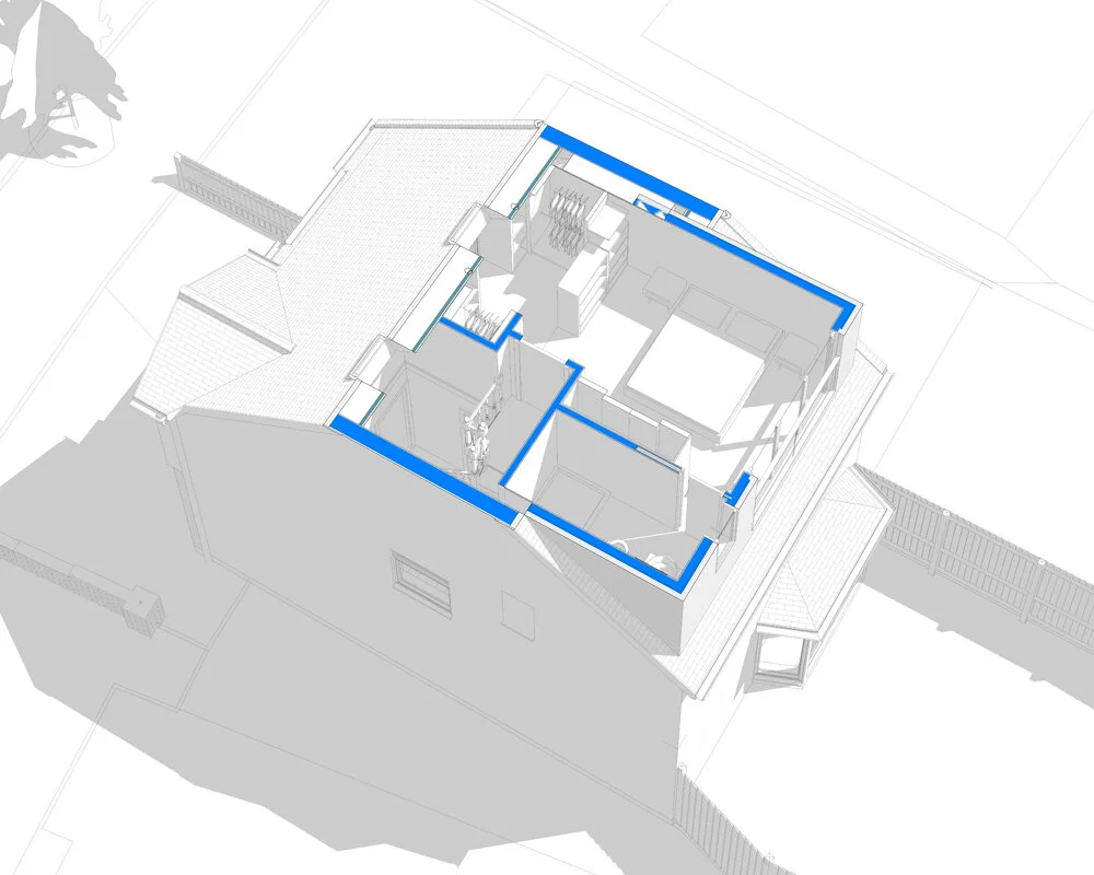 The total footprint of the existing loft is 46m2 (please note you can only stand up in a small percentage of the existing loft space). Therefore the proposed internal footprint is 30m2, this is a use of 65% of the existing footprint.