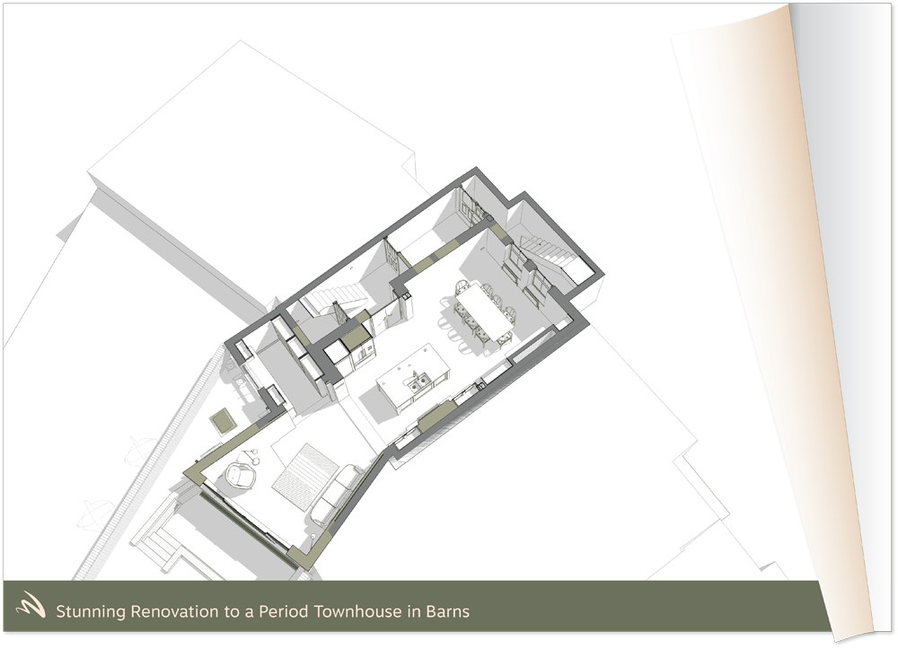 Our clients set out to transform their period townhouse in Barnes, West London. Their aim was to carefully modernise the home while celebrating and enhancing its original period features, creating a balance between contemporary living and classic character.
