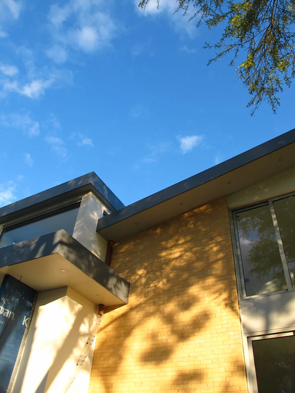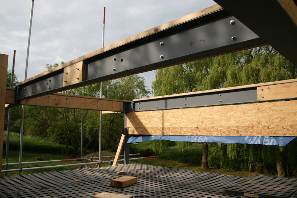 The site enjoys a secluded and picturesque setting within the village, framed by a meandering stream and a striking boundary of mature weeping willows. The house was carefully oriented to face south, capturing natural light throughout the day and offering expansive views over the landscape. A generous first-floor terrace takes full advantage of these vistas. The design features dramatic glazing, a rich and varied material palette, and a bold, inverted wing-shaped roof that gives the house a distinctive architectural identity.