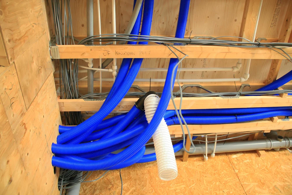 With such highly efficient, airtight building fabric, the installation of ventilation system, MVHR, is the perfect way to heat new build homes.